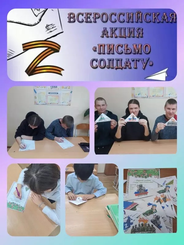 В рамках поддержки российских военнослужащих, участвующих в СВО, обучающиеся нашей школы приняли участие в акции «Письмо солдату». Ребята, полные искренних чувств и добрых слов, написали письма, которые станут не только поздравлением с наступающим Новым годом, но и проявлением их уважения и поддержки. Написанные письма будут переданы солдатам, которые выполняют военный долг и принимают участие в СВО. Пусть эти письма станут символом единства и поддержки, даря солдатам уверенность в том, что они не одни, что их героизм восхищает и вдохновляет.