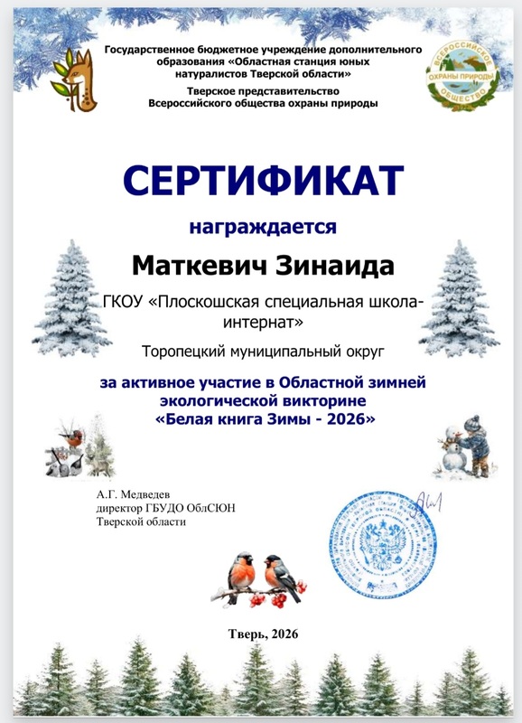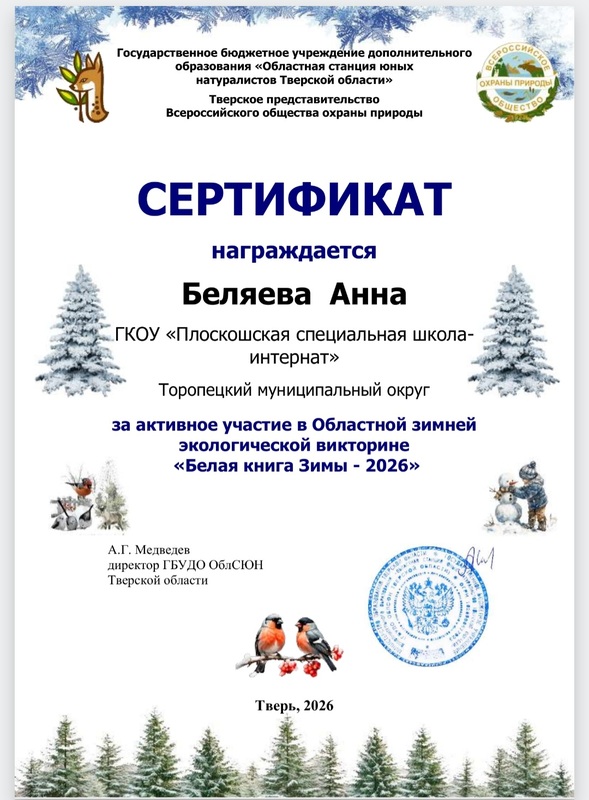 1.Региональная зимняя интернет-викторина «Белая книга Зимы - 2026»